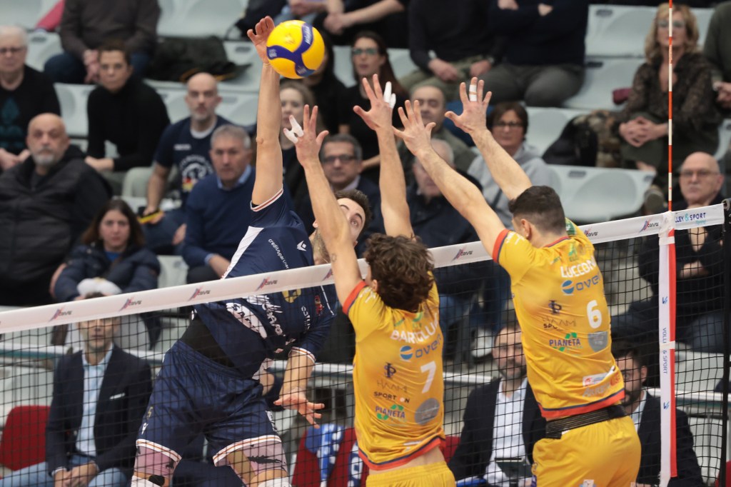 Valentini dispone in campo il regista Russo in linea con l’opposto Guzzo, Vukasinovic e Tallone schiacciatori, i centrali Canella e Grottoli, Goi libero.
