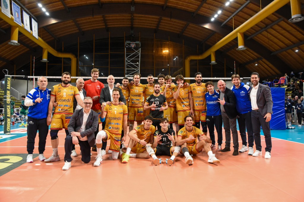 Paolo Montagnani rimane fedele allo starting six delle sue prime uscite e schiera Davide Saitta in regia con Manuele Lucconi al suo opposto Manuele Lucconi, Luka Basic e Javad Manavi sulla diagonale di quattro, Elia Bossi e Filippo Bartolucci al centro e Simone Orto nel ruolo di libero.