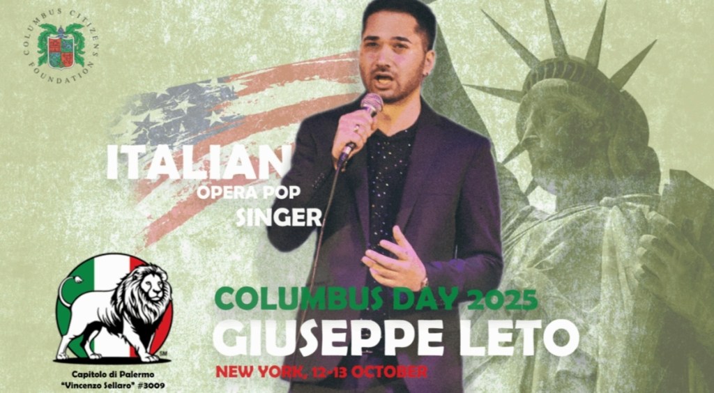 Nuova e prestigiosa tappa internazionale per Giuseppe Leto, giovane talento pop lirico originario di Cammarata (AG), che nei prossimi giorni volerà negli Stati Uniti per rappresentare ufficialmente la Sicilia al Columbus Day 2025 di New York. L’artista, già conosciuto dal grande pubblico per la partecipazione al programma Io Canto su Canale 5 nel 2010 e per aver rappresentato l’Italia in un talent show ungherese nel 2023, sarà protagonista di due importanti eventi grazie alla collaborazione con il Capitolo di Palermo dell’Order Sons and Daughters of Italy in America (OSDIA).