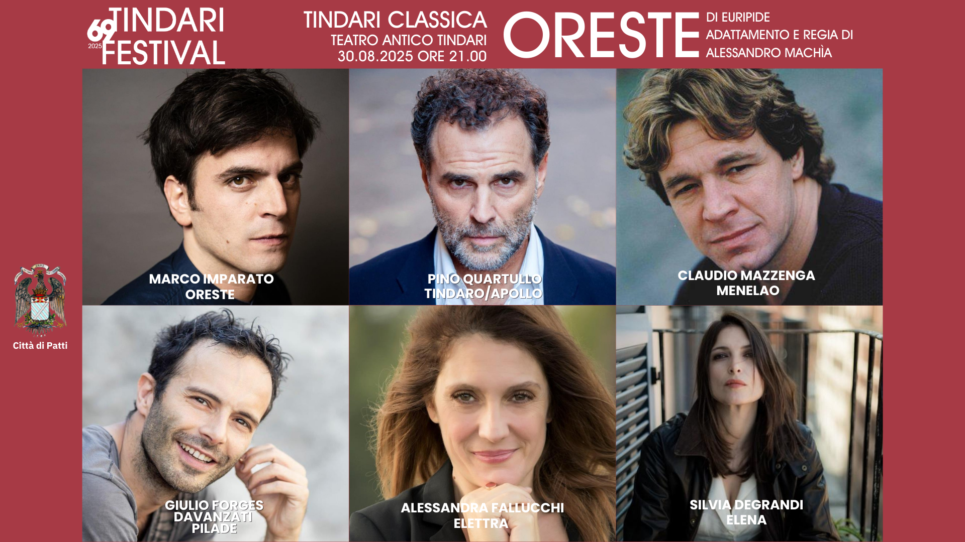 Ultimo appuntamento del Tindari Festival, infine, sabato 30 agosto alle ore 21, ancora nella cornice del Teatro Antico, con lo spettacolo “Oreste” di Euripide, con Pino Quartullo, Silvia Degrandi, Gaetano Aronica e Marco Imparato, diretti dalla regia di  Alessandro Machìa. L’opera si apre all’indomani dell’assassinio di Clitennestra, madre di Oreste, da parte del figlio e della sorella Elettra. I due giovani, in attesa di essere giustiziati da una comunità che li condanna per il loro gesto, si trovano assediati da una crisi identitaria e sociale.