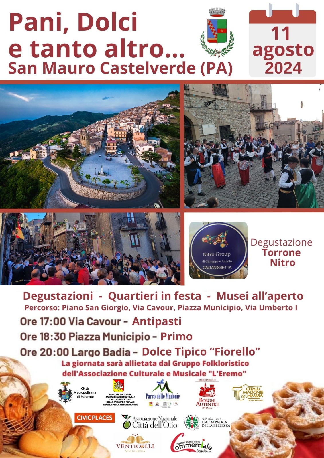 Si rinnova l’appuntamento “Pani, Dolci e tanto altro…” che si terrà domenica prossima 11 agosto. La stagione estiva di San Mauro Castelverde è un continuo di appuntamenti che sono anche l’occasione per far scoprire ai visitatori le bellezze dei luoghi, gli usi i costumi e storia del paese.