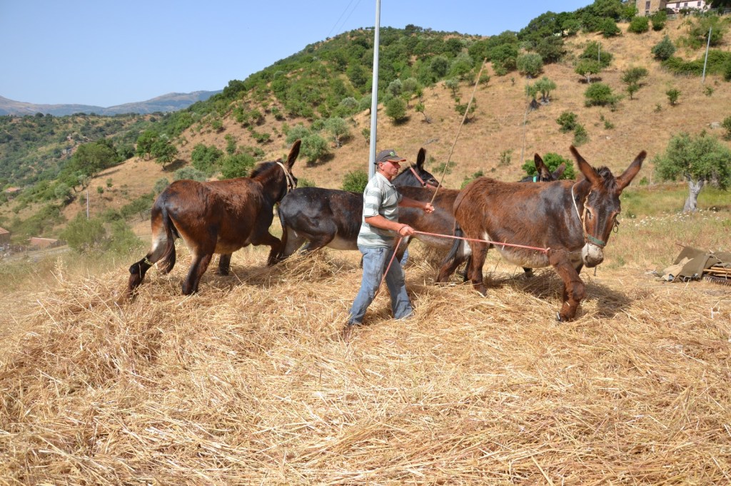 “Pani, Dolci e tanto altro…”, infatti, si apre con un appuntamento quasi storico che è “A pisata” ( la trebbiatura) con le mule. Uno spaccato di vita contadina che ancora oggi viene rappresentata dagli ultra settantenni fratelli gemelli Nicolosi, ultimi testimoni di un passato non molto lontano che è ormai scomparso. Grazie a loro, che ancora oggi usano queste pratiche, il paese conserva questa tradizione che ogni anno viene riproposta. “A pisata” è un momento particolare del lavoro dei campi perché era il coronamento di un lungo lavoro sotto il sole cocente che garantiva il pane e la vita per le famiglie. Una testimonianza che i fratelli Nicolosi rappresenteranno in piazza rendendola emozionante anche grazie ai canti e ai versi che recitano mentre le mule calpestano le spiche per sgranarle.