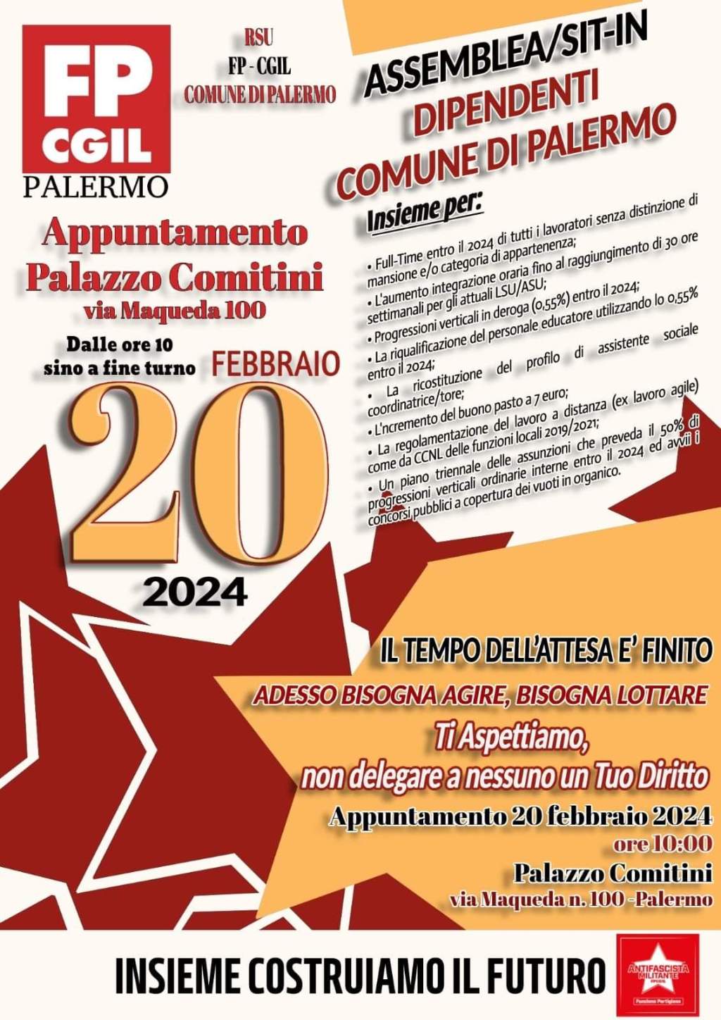 Palermo 19 febbraio 2024 – Domani l’assemblea sit-in di tutti i dipendenti si farà regolarmente alle ore 10 nell’atrio di palazzo Comitini.