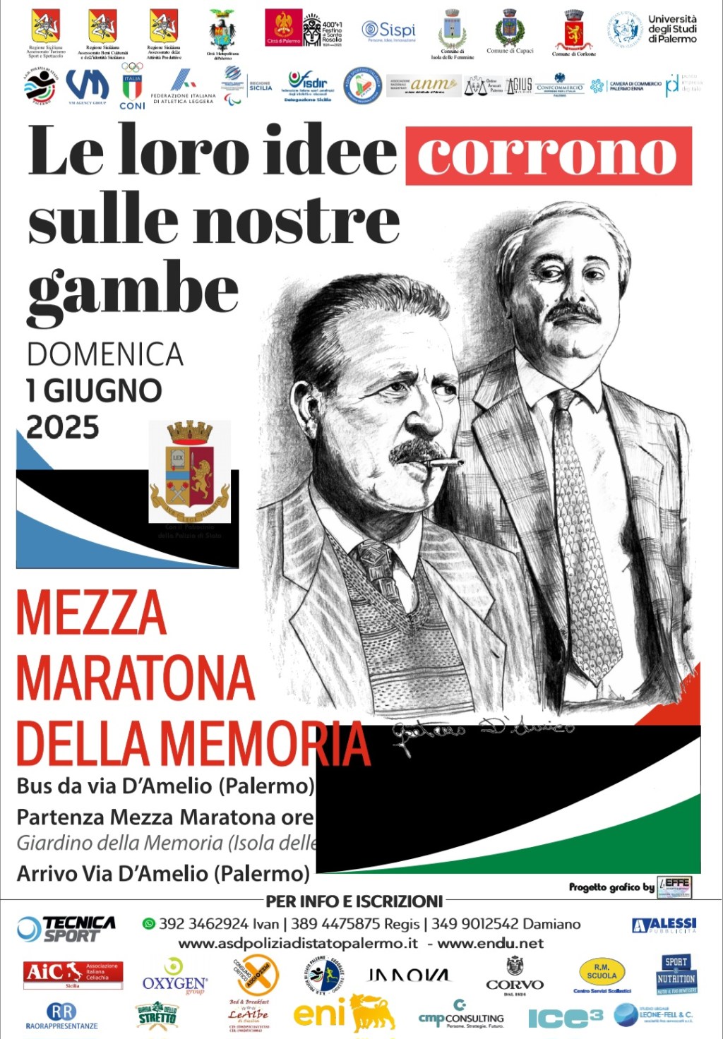 La gara, promossa dall’ASD Polizia di Stato, con l’organizzazione generale di VM Agency Group, partirà domenica mattina alle ore 8.00 dal Giardino della Memoria di Isola delle Femmine e arriverà in via D’Amelio, per unire, simbolicamente, i luoghi delle due stragi.