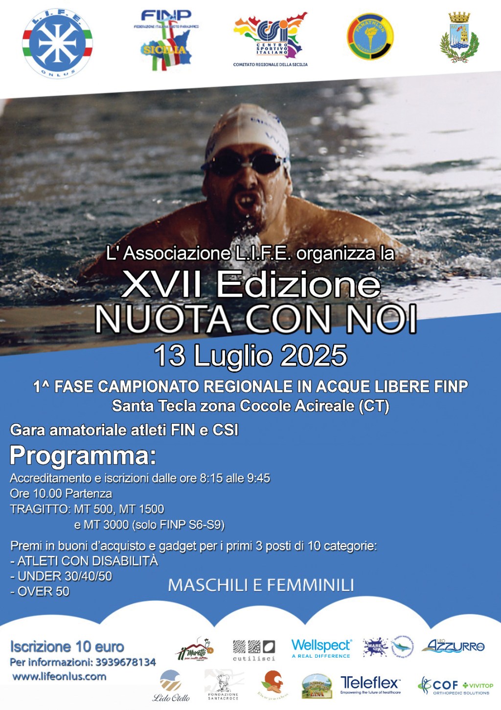 “Nuota con noi è molto più di una gara: è un momento di festa, di partecipazione e di sensibilizzazione – dichiara Martino Florio, presidente dell’Associazione L.I.F.E. – Ogni anno, grazie all’entusiasmo degli atleti e al sostegno degli enti coinvolti, dimostriamo che lo sport è uno straordinario strumento di inclusione sociale”.