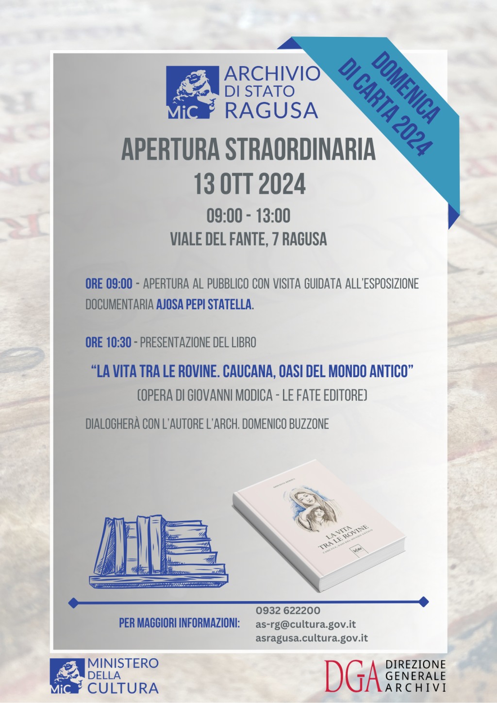 Ritornano le iniziative del Ministero della Cultura, a cura dell’Archivio di Stato di Ragusa.