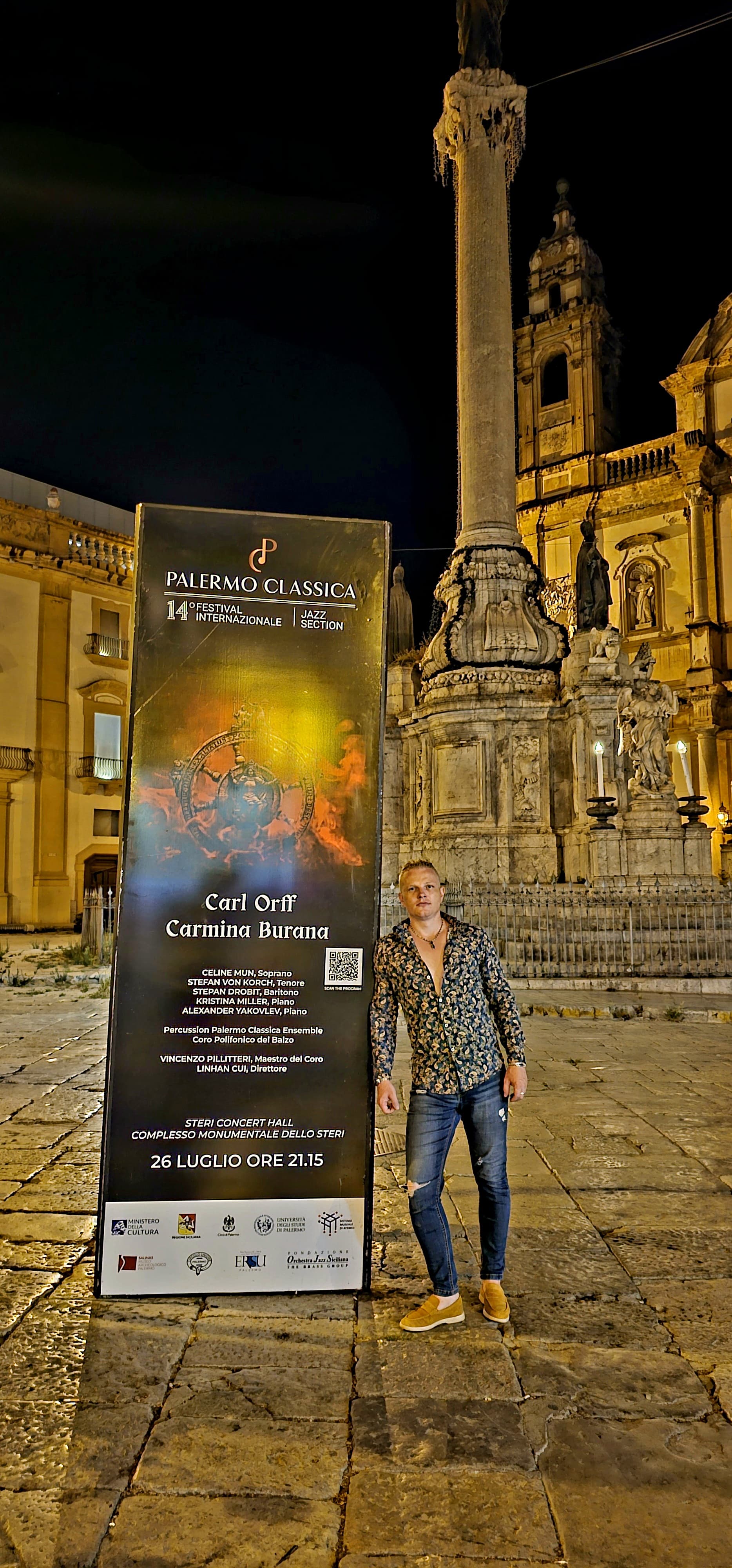 Il tenore Stefan von Korch ha aperto il Festival Palermo Classica, debuttando sulla scena italiana con i Carmina Burana, la cantata più famosa al mondo, che ha già eseguito più di 35 volte e per la quale molti specialisti considerano la sua voce un punto di riferimento per la partitura tenorile .