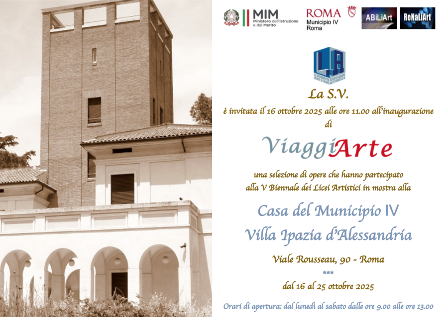 “È con grande orgoglio che oggi accogliamo la mostra ViaggiArte a Roma, parte integrante della V Edizione della Biennale dei Licei Artistici. Ringrazio l’associazione A.Bi. Li.Art, i docenti, gli studenti e le studentesse che hanno reso possibile questo percorso. Il Municipio IV continuerà a sostenere progetti come questo, che mettono al centro la formazione, la creatività e il protagonismo giovanile” conclude il presidente del Municipio Roma IV Massimiliano Umberti.