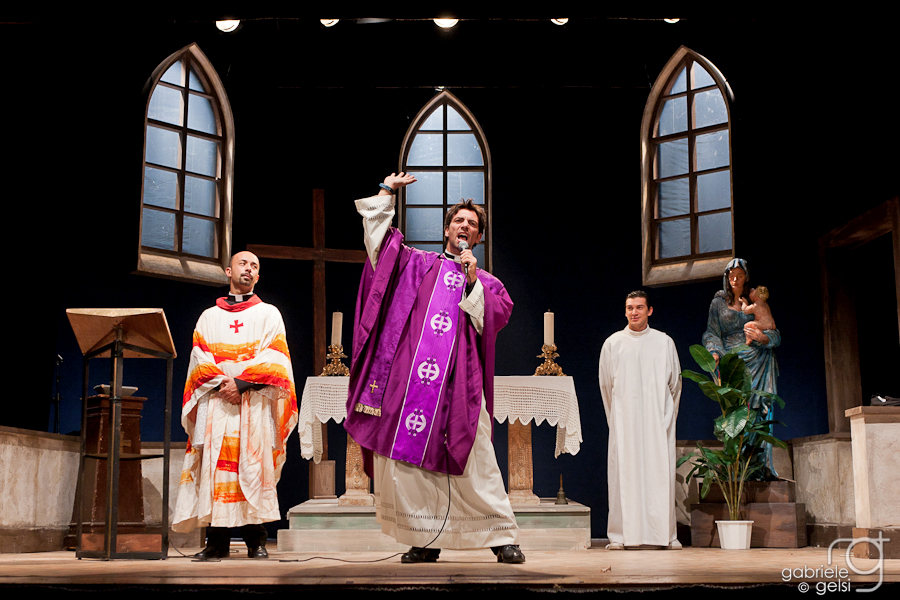 Insieme a lui sul palco anche Antonello Pascale, Gaspare Di Stefano, Gioele Rotini e Alessia D’Anna. Lo spettacolo racconta una storia avvincente e toccante. Due sacerdoti, Don Ezio e Don Sabatino, vengono inviati in una chiesa abbandonata situata in un quartiere di periferia, un luogo segnato dalla malavita e dalla criminalità. Il loro compito è arduo: riportare speranza e luce dove regnano abbandono e paura. La sfida che li attende si trasforma presto in un’avventura coinvolgente e a tratti esilarante, capace di risvegliare il senso di comunità, solidarietà e coraggio tra gli abitanti. La trama si sviluppa in un susseguirsi di momenti divertenti e riflessivi, dove il potere delle parole e della musica diventa la chiave per riaccendere la speranza. Grazie alla creazione di un coro, Don Ezio e Don Sabatino riescono infatti a trasformare una chiesa dimenticata in un centro di aggregazione e riscatto sociale, dimostrando che a volte i veri eroi non indossano mantelli, ma semplici camicie e colletti bianchi.