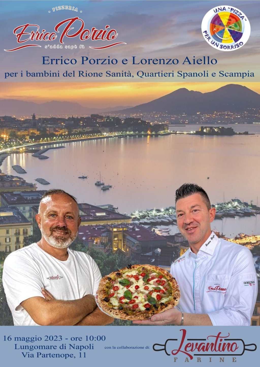 Giorno 16 maggio 2023 una pizza per regalare un sorriso ai ragazzi dei quartieri Spagnoli, Sanità e Scampia. È questo il senso dell’iniziativa, denominata “Una pizza per un sorriso“, progetto che nasce nel 2012, da un’idea dello chef pizzaiolo villabatese Lorenzo Aiello, basata sull’inclusività e la solidarietà. Per l’occasione Lorenzo Aiello da Palermo e Errico Porzio insieme per regalare un sorriso ai ragazzi quartieri Spagnoli, Sanità e Scampia. Musica, divertimento, animazione e intrattenimento per un pomeriggio in allegria. “Sono orgoglioso del risultato che abbiamo raggiunto. Scendiamo in campo per quelle realtà meno fortunate e per i ragazzi diversamente abili, proprio per proporre i principi dell’inclusività. Il tutto a titolo chiaramente gratuito. Voglio ringraziare chi mette a disposizione gli spazi per organizzare l’evento, dando così la possibilità ai bambini di potersi cimentare nelle basi di questa meravigliosa passione.