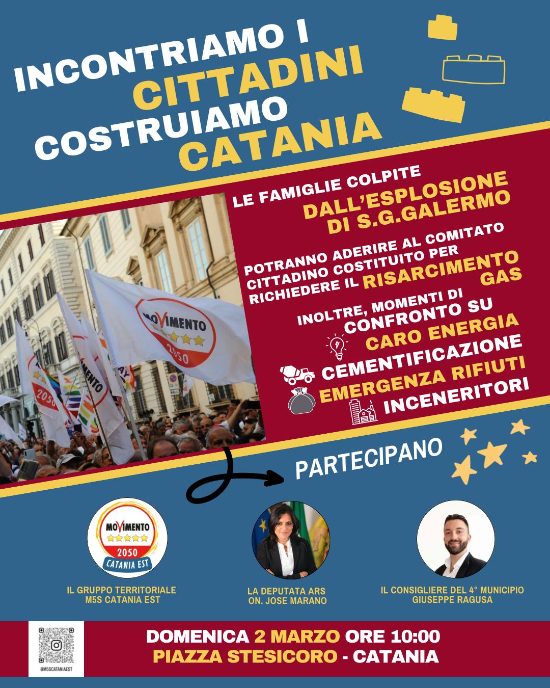 “Domenica 2 marzo, a partire dalle 10, in piazza Stesicoro a Catania incontreremo tutti i cittadini che hanno subìto danni in seguito all’esplosione causata da una fuga di gas nel quartiere Trappeto Nord-San Giovanni Galermo. Ad essi verrà data la possibilità di aderire al Comitato cittadino che è stato costituito al fine di presentare una richiesta di risarcimento”.