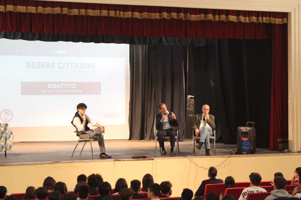 L’incontro, organizzato dai rappresentanti degli studenti e moderato dal già Presidente della Consulta Provinciale Studentesca e attuale rappresentante Francesco Pezzillo, ha trattato di cittadinanza attiva, territorio, giovani, università e buone norme per il rispetto civico.