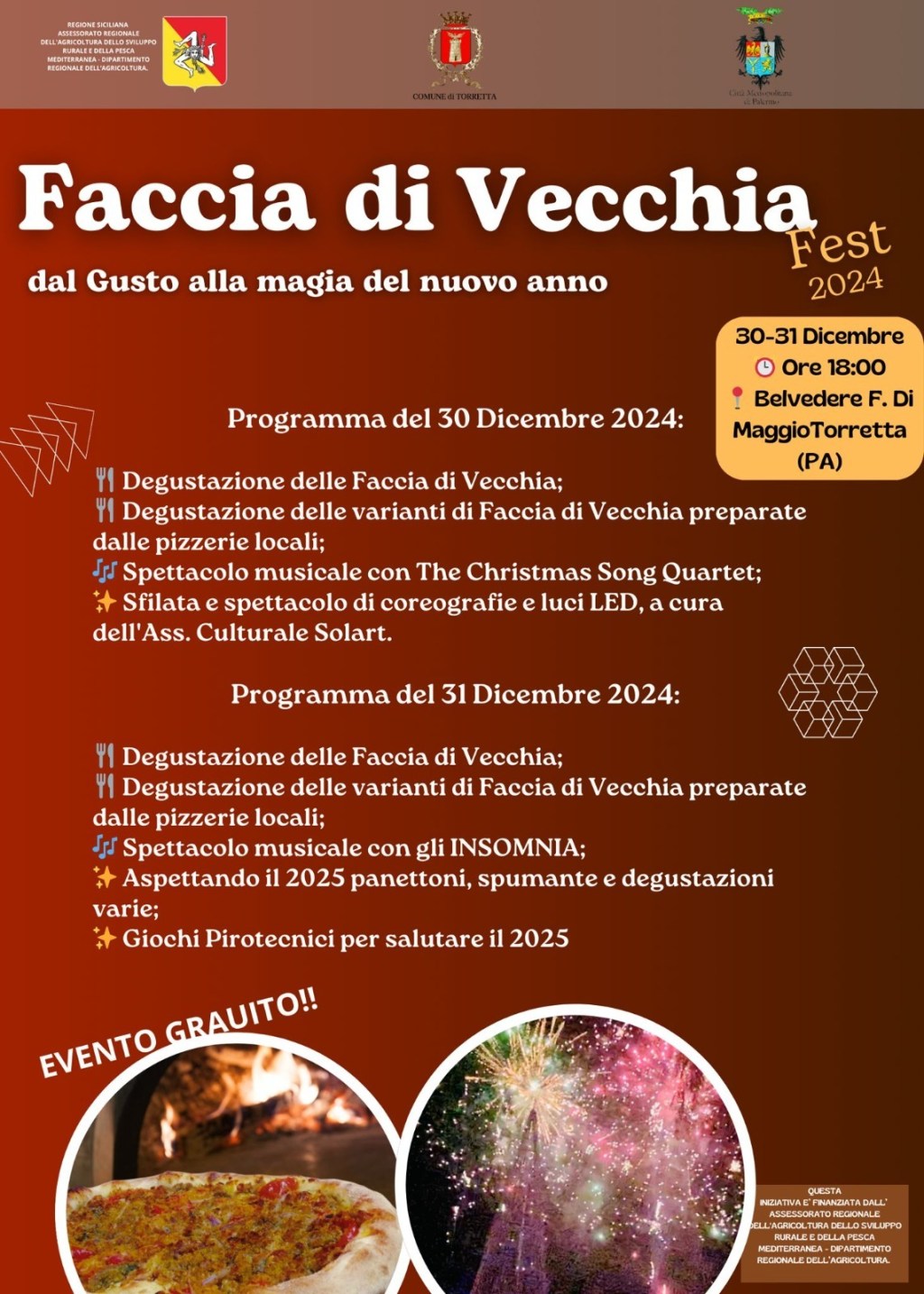 Torretta, è pronta ad ospitare due giorni di festa e convivialità con il “Faccia di Vecchia Fest”, che celebra i sapori autentici del nostro territorio. Il prossimo 30 dicembre 2024, a partire dalle ore 18:00, al Belvedere Francesco di Maggio, Torretta si trasformerà in un palcoscenico di gusto, musica e spettacolo per il “Faccia di Vecchia Fest – Celebriamo il gusto della tradizione!”.