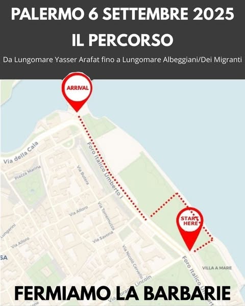 A Palermo sabato si terrà un corteo che prevede la partenza alle ore 17 dal lungomare Yasser Arafat al Foro Italico per raggiungere la Cala (Lungomare Albeggiani/dei Migranti).