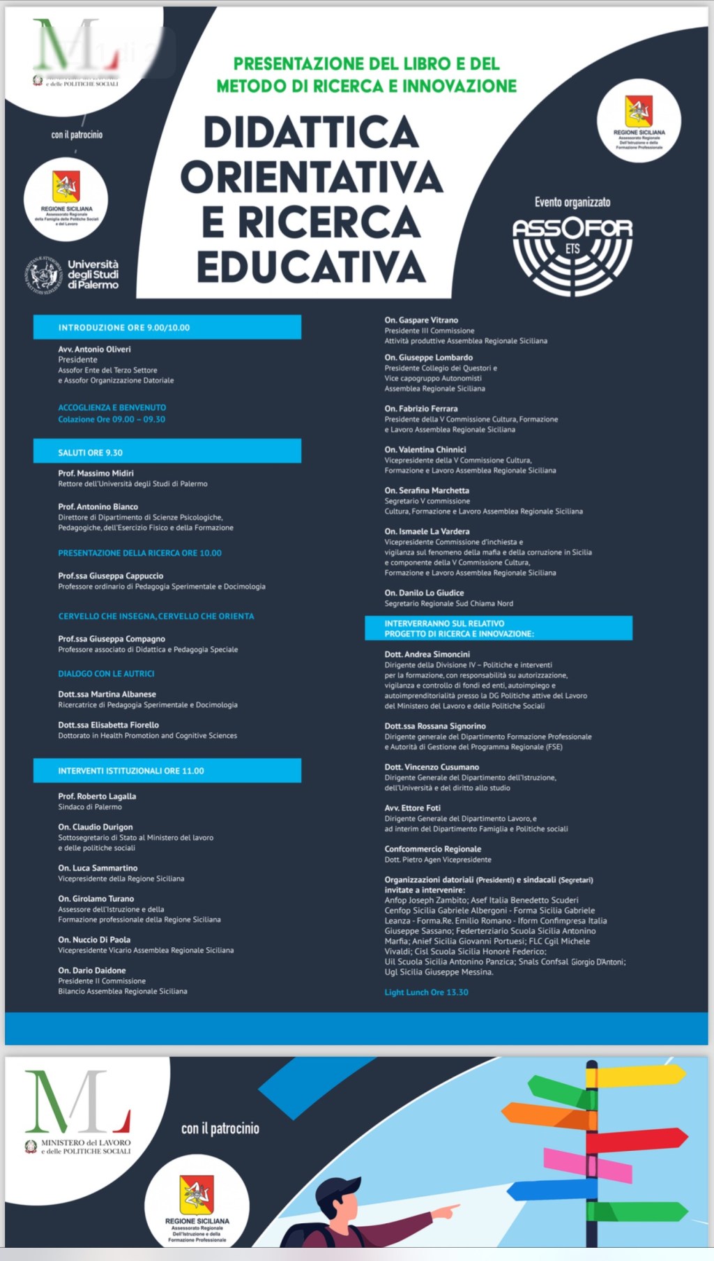 Interverranno il sottosegretario al ministero del Lavoro e delle Politiche sociali, Claudio Durigon, il vicepresidente della Regione siciliana, Luca Sammartino, l’assessore dell’Istruzione e della Formazione professionale, Girolamo Turano, il vicepresidente dell’Ars Nuccio Di Paola, il sindaco Roberto Lagalla e gli onorevoli Dario Daidone, Gaspare Vitrano, Giuseppe Lombardo, Fabrizio Ferrara, Valentina Chinnici, Serafina Marchetta, Ismaele La Vardera e Danilo Lo Giudice.