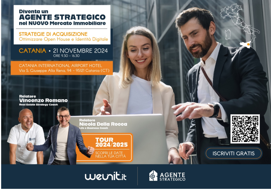 “Weunit.it crede fermamente nella formazione continua quale strumento di sviluppo e crescita per gli agenti immobiliari ed è per questo motivo che investiamo con convinzione nel Tour Agente Strategico”, aggiunge Pietro Messina referente aziendale in Sicilia.