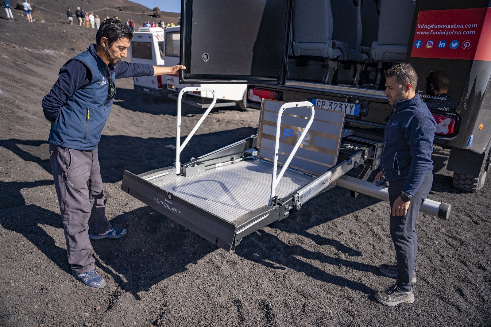 Nel segno dell’innovazione Funivia dell’Etna sceglie un veicolo dalle grandi peculiarità, caratterizzato dalla dotazione di pedana elettrica con carrello progettata per il trasporto di persone con disabilità, nel pieno rispetto delle normative europee sulla sicurezza. Un mezzo davvero “speciale”, che grazie alla sua moderna tecnologia è concepito per strade impervie e condizioni atmosferiche estreme.