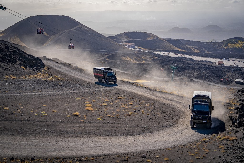 Sul più alto vulcano d’Europa sbarcano i nuovi Mercedes Unimog, i veicoli offroad adottati da Funivia dell’Etna per il servizio di trasferimento riservato ai turisti. Nei giorni scorsi il nuovo bus allestito da Tomassini, storico brand di progettisti specializzati nella mobilità, è stato testato per la prima volta in alta quota, impegnato tra le ripide pareti scoscese del Vulcano.