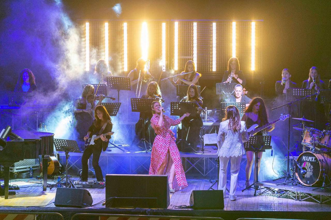 Ad  accompagnarla sul palco la Women Orchestra- orchestra sinfonica tutta al femminile che racconta le donne dal 2017- diretta dalla bacchetta energica e talentuosa di Alessandra Pipitone- che proprio al Teatro Antico, già dal 2021, si è esibita brillantemente come Direttrice d’Orchestra di Opere quali Carmen, Aida e Traviata.