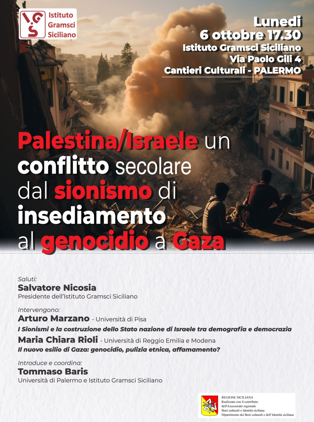 Il dibattito che si terrà all’Istituto Gramsci Siciliano, lunedì 6 ottobre alle ore 17.30, punta ad offrire una ricostruzione dei processi storici che hanno portato ai drammatici eventi in questi giorni sotto gli occhi di tutti. Pensiamo infatti che per comprendere l’attacco terroristico di Hamas del 7 ottobre 2023 e la dimensione genocidaria della risposta israeliana, da allora in atto a Gaza, non si possa fare a meno di inquadrare storicamente un conflitto che affonda le sue radici alla fine dell’Ottocento quando il movimento sionista pensò alla creazione di uno stato ebraico in una area, la Palestina, che stava conoscendo processi di modernizzazione economica e politica, e la cui popolazione e classe dirigente puntava alla creazione di un proprio stato nazionale.