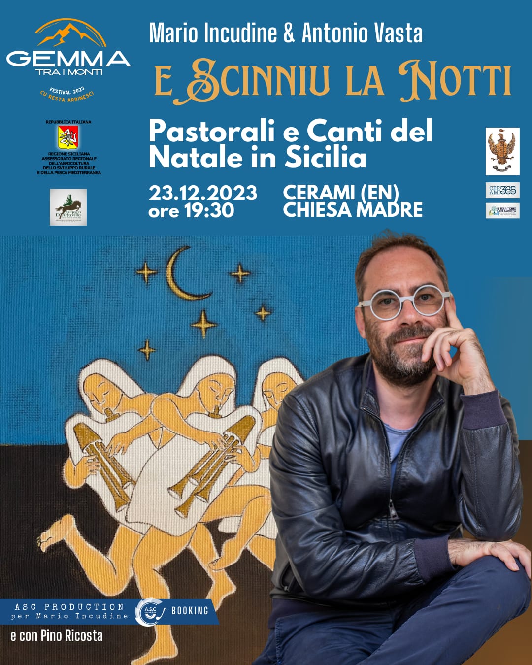 Infine, l’evento si chiuderà in bellezza, nella serata del 23 dicembre a partire dalle 19.30 in Chiesa Madre, con il Grande Concerto di Natale “E scinniu la notti- Pastorali e canti del Natale in Sicilia”, con Mario Incudine e Antonio Vasta, una produzione Asc Production.