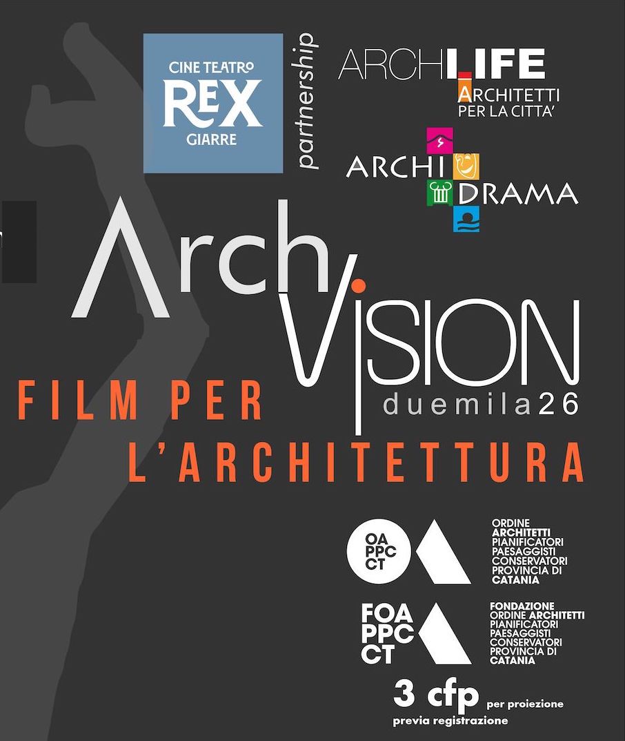 L’associazione ArchLife – Architetti per la Città di Giarre presenta ArchVision 2026, la seconda stagione della rassegna cinematografica dedicata all’architettura e al suo racconto attraverso il linguaggio del cinema. L’iniziativa nasce dalla sinergia con ArchiDrama e la direzione artistica del Cine Teatro Rex di Giarre, con il patrocinio dell’Ordine degli Architetti di Catania e della Fondazione Architetti Catania, consolidando un progetto culturale che lo scorso anno ha saputo coinvolgere professionisti, studenti e cittadini in un dialogo aperto sul senso dell’architettura contemporanea.