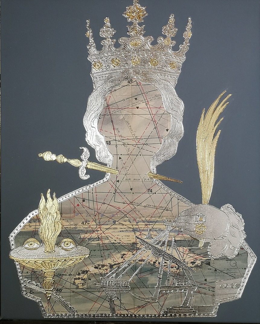Poi ci saranno le carte che potremmo definire “paesaggistiche”. In questo caso, si tratta di alcuni lavori della serie “Rosa dei Venti”, in cui l’artista istituisce un legame visivo fra territorio rappresentato e il relativo vento che lo caratterizza, insieme ad altri dedicati ai propri “luoghi del cuore” e alla sua terra natia. Inoltre, verranno mostrate le prime opere inedite della sua nuova serie “Astrocartografia”, in corso di realizzazione, dedicata agli astri, al cosmo e alle costellazioni, pur mantenendo un’impronta paesaggistica.