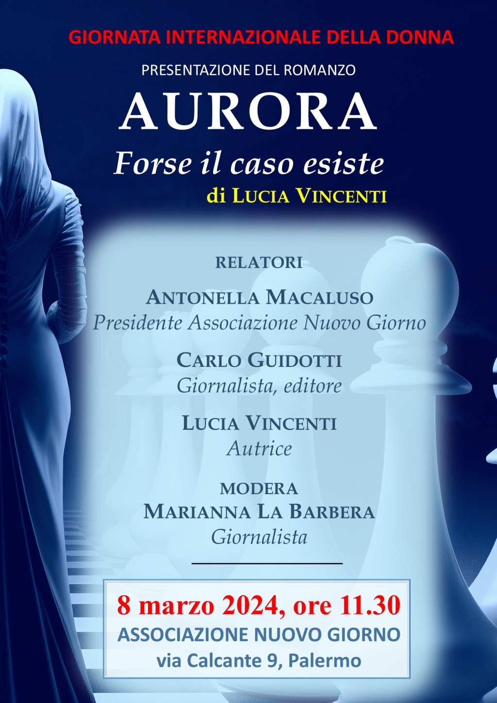 In occasione della tradizionale ricorrenza dell’8 marzo, l’organizzazione di volon-tariato “Un Nuovo Giorno” presieduta da Antonella Macaluso sceglie il romanzo dell’autrice Lucia Vincenti per affrontare alcune tematiche che riguardano la condizione femminile.