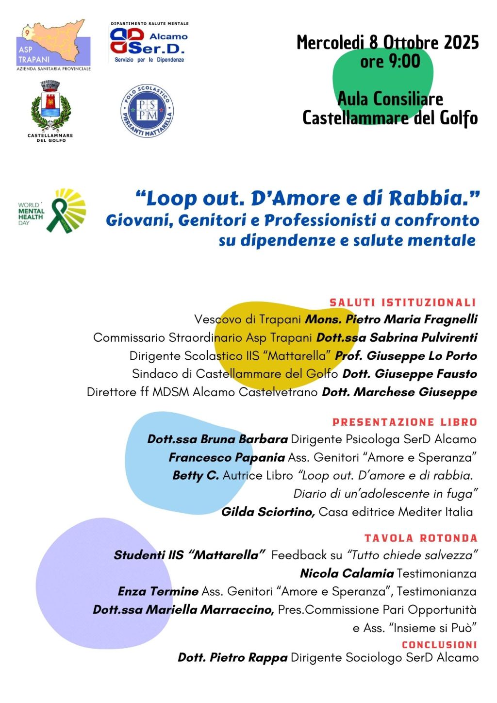 A Castellammare del Golfo ci si ritroverà alle 9.30 di mercoledì 9 ottobre nell’aula consiliare per la presentazione del libro “Loop Out. D’amore e di rabbia. Diario di un’adolescente in fuga” di Betty C. (Mediter Italia Edizioni)