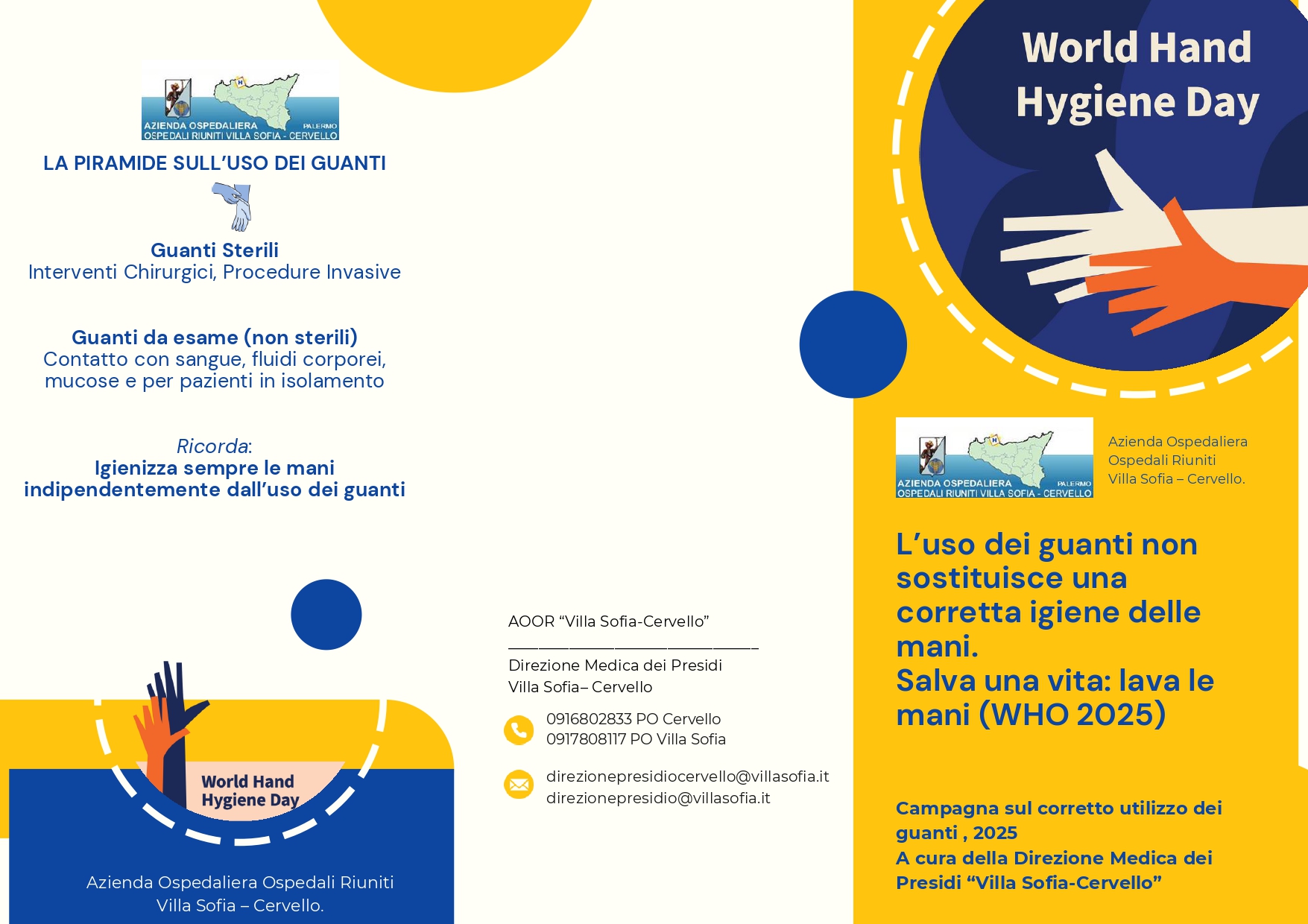 In particolare, la Direzione medica di Presidio Villa Sofia-Cervello, diretta da Ilaria Dilena, ha realizzato un opuscolo informativo “World Hand Hygiene Day” sul tema della campagna 2025 “Guanti, a volte. Igiene delle mani, sempre”, rivolta a operatori sanitari e cittadini per sensibilizzare sull’importanza delle tecniche più appropriate di igiene delle mani come efficace misura di prevenzione delle infezioni.