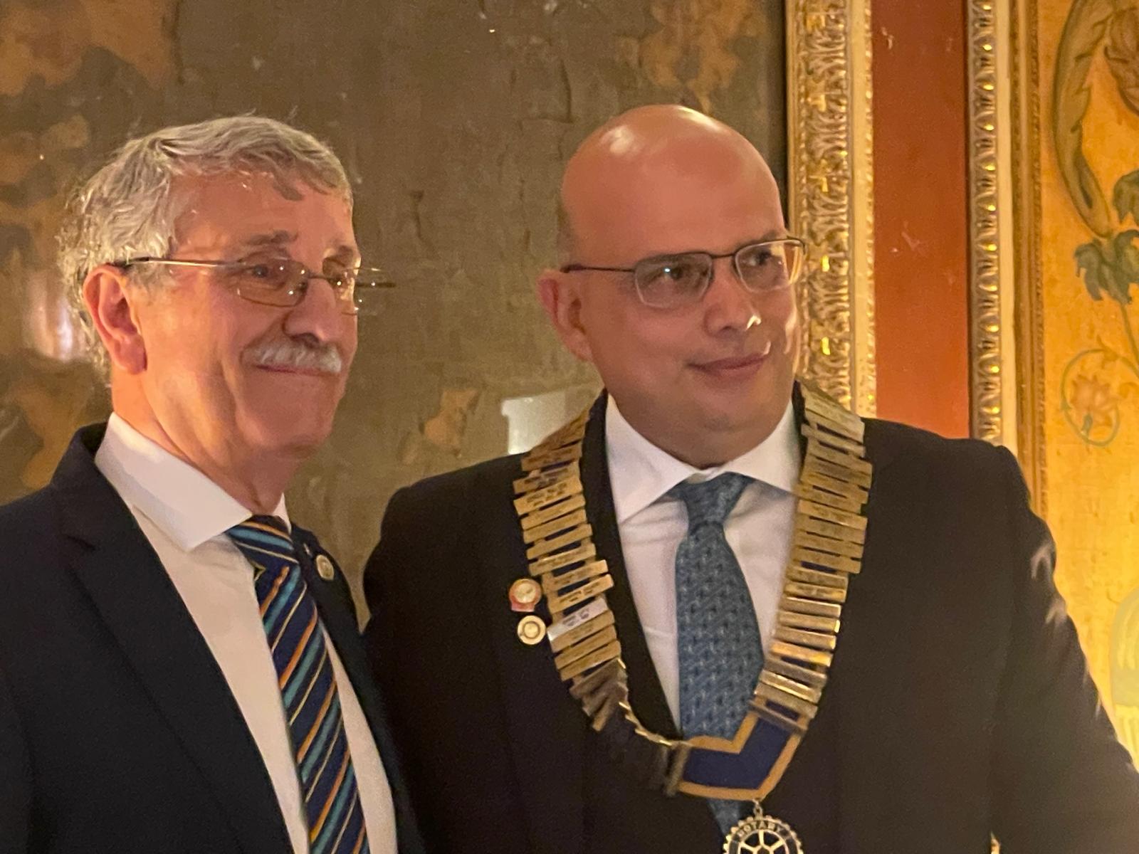 Passaggio della campana nel Club Rotary Palermo Ovest, tra il presidente uscente Giacomo Trupia e il nuovo presidente Giuseppe Cascio, il 24 giugno scorso, presso Villa Airoldi.