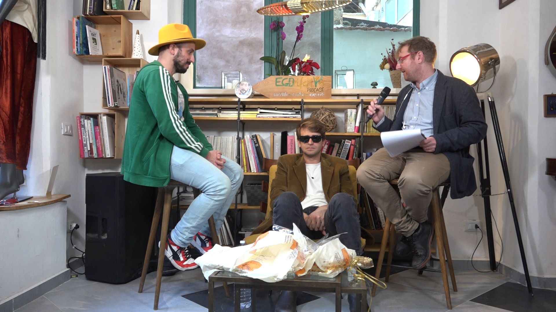 “Egoriferiti” è la conversazione tra un ospite e le sue due coscienze – rappresentate dal regista Giuseppe Cardinale e dal giornalista Vassily Sortino – alla ricerca del punto più sincero del proprio essere.