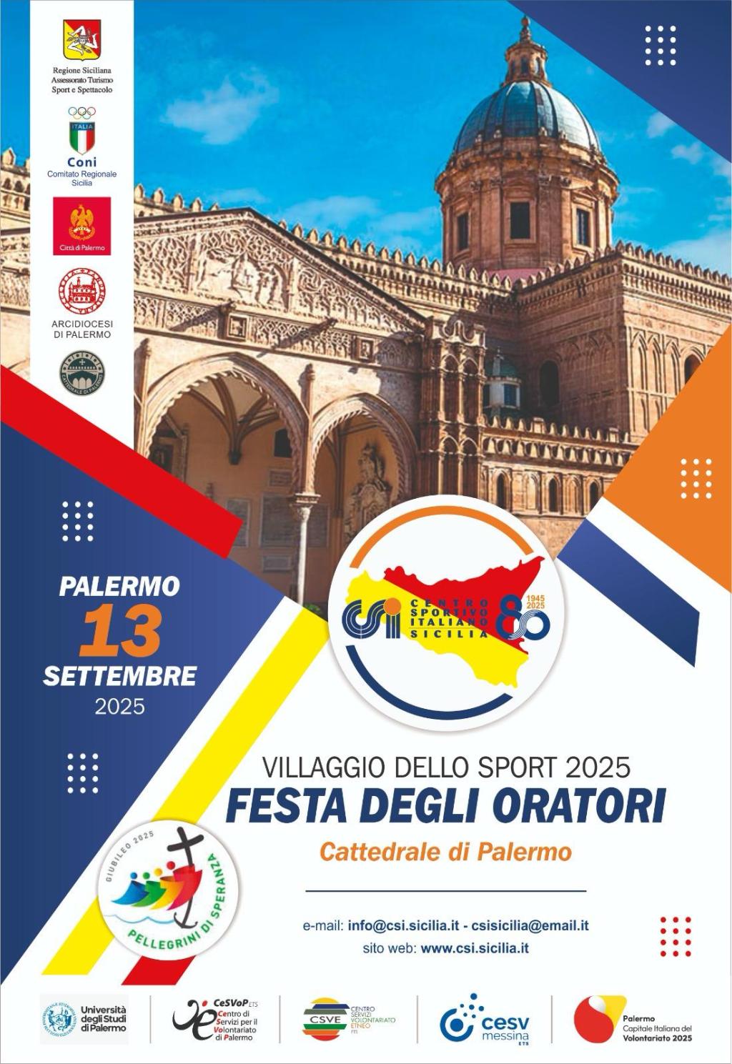 Si inizierà venerdì 12 settembre con il convegno regionale delle presidenze dei Comitati Territoriali del CSI Sicilia presso Villa Niscemi (Sala delle Carrozze) alla presenza del presidente nazionale Vittorio Bosio; un’occasione di riflessione e confronto sui valori che hanno segnato la storia del CSI e sul ruolo che esso continuerà a svolgere nelle comunità. Sabato 13 settembre la giornata centrale sarà dedicata al Giubileo Regionale dello Sport alla presenza dell’arcivescovo Corrado Lorefice. Momenti significativi saranno la preghiera sulla tomba del Beato Pino Puglisi in Cattedrale, l’inaugurazione del Villaggio dello Sport con gare e attività polisportive e la celebrazione eucaristica giubilare. In serata ci sarà il pellegrinaggio al Santuario di Santa Rosalia a Montepellegrino, segno di fede e tradizione profondamente radicata nella città.