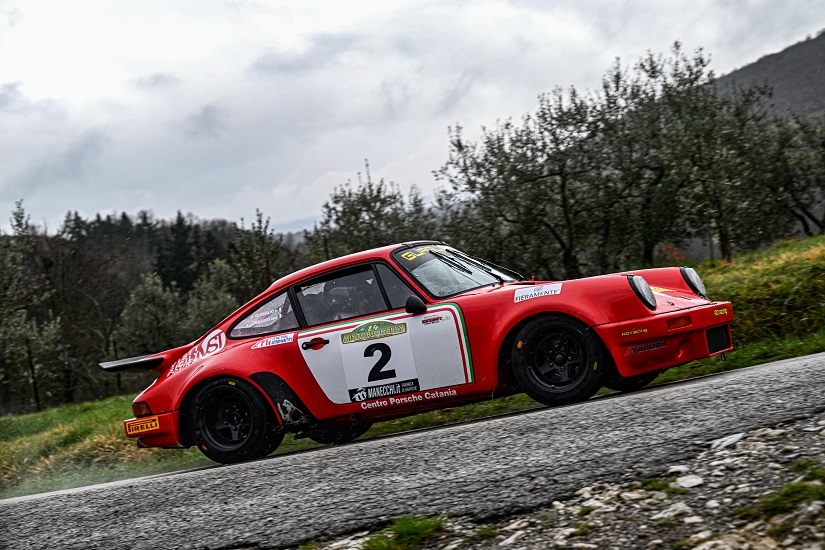 I due campioni italiani del 2022 hanno portato la loro Porsche 911 del Secondo Raggruppamento, seguita da Guagliardo, sul gradino più alto del podio e, correndo sotto la pioggia, che ha tempestato la due giorni motoristica toscana, hanno staccato vistosamente il resto della compagine.