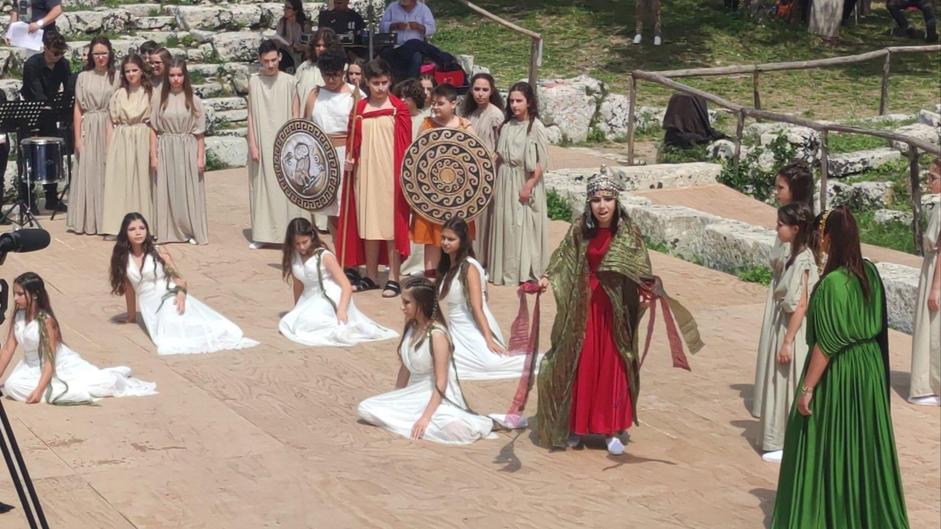 Amore, guerra, follia, lutto. Ci sono tutti i temi “cari” alla drammaturgia classica in “Eroine dell’Oikos. Ecuba, Medea, Antigone, intrecci corali nel tragico”, lo spettacolo del IV istituto comprensivo “Salvatore Quasimodo” di Floridia, andato in scena al Teatro Greco di Akrai, a Palazzolo Acreide, nell’ambito del Festival internazionale del teatro classico dei giovani della Fondazione Inda.