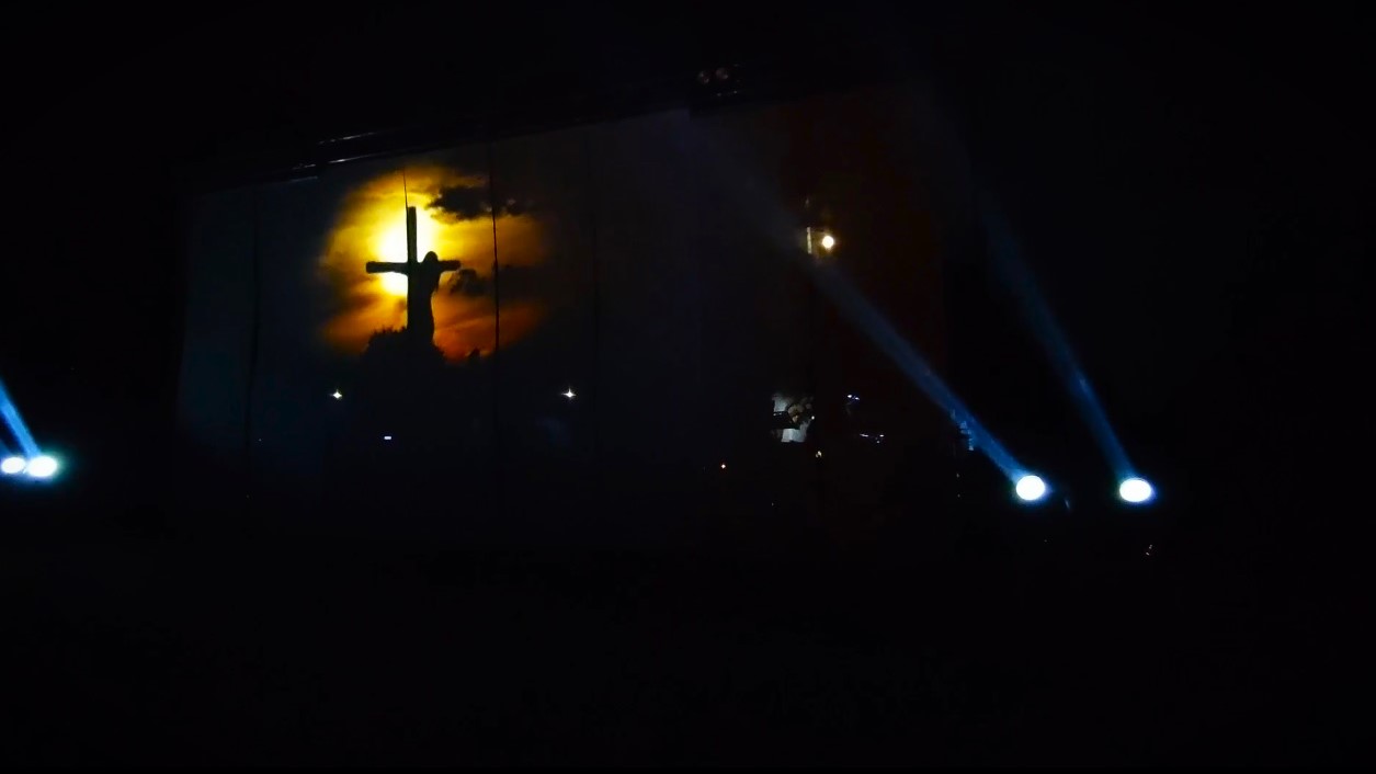 In poco più di un’ora musicisti e cantanti, attraverso un megaschermo trasparente, hanno illustrato episodi della Bibbia e del Vangelo, aprendo con Una voce che grida, ossia quella del profeta Giovanni Battista, anello di congiunzione tra Vecchio e Nuovo testamento. Altri temi, La Tempesta Sedata, La Danza di Salomè, Cresce, Il Tempio, ossia la cacciata dei mercanti, Nell’Aurora il mio destino, Il tradimento di Pietro, Getsemani, Crocifissione e Resurrezione.