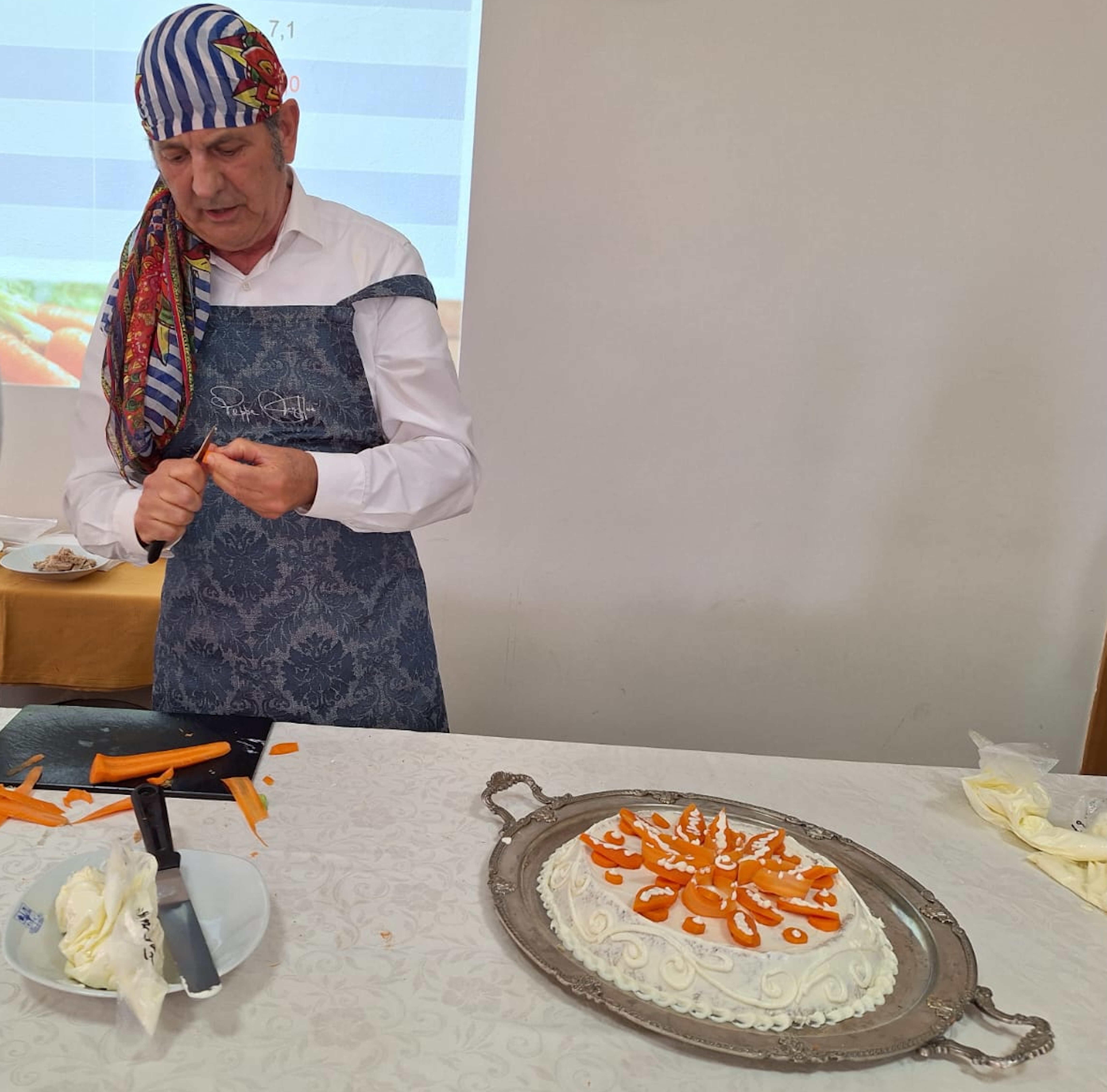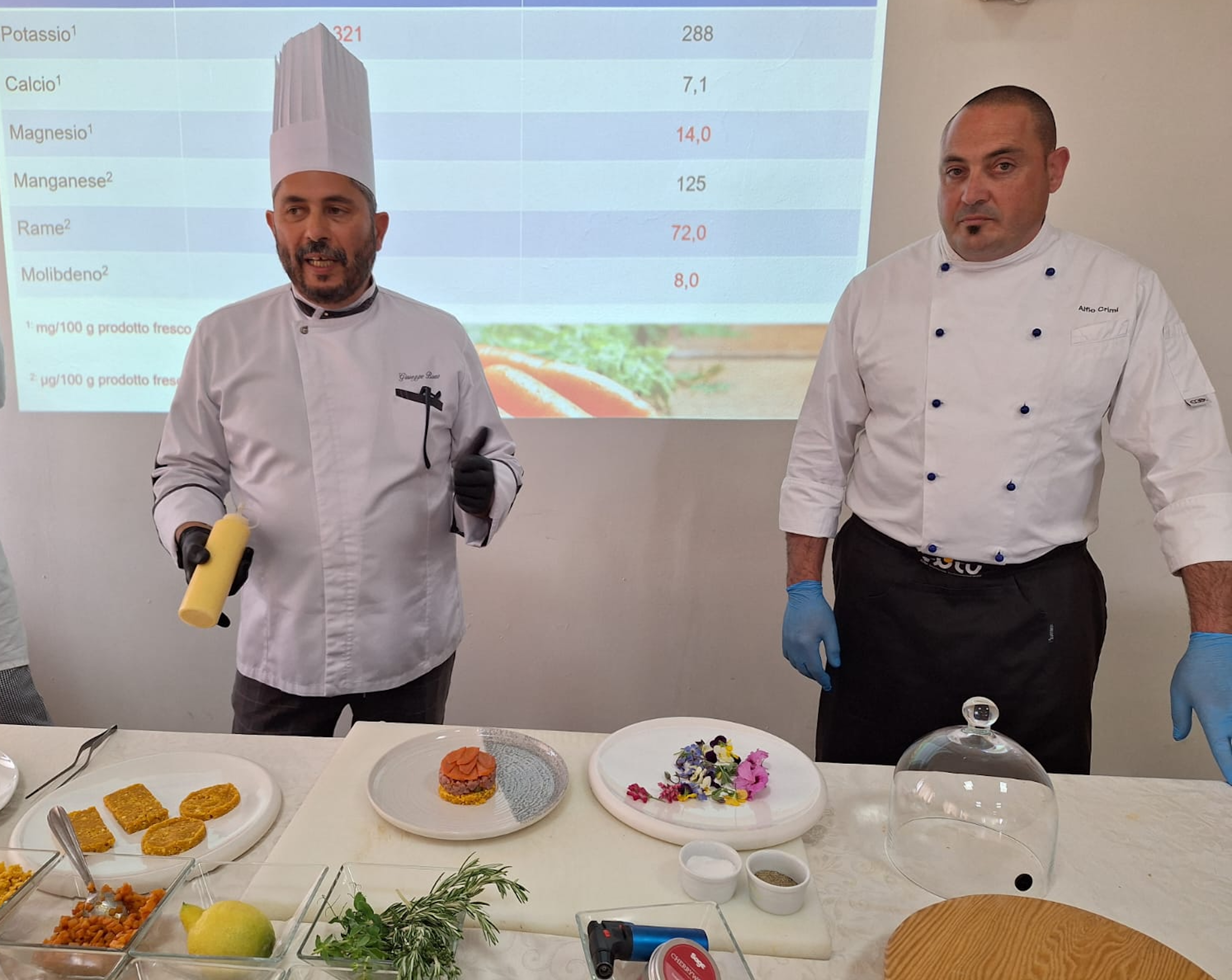 Il seminario che si è svolto questa mattina è stato coordinato dai professori di cucina Mario Dispinseri (responsabile eventi dell’IPS Federico II) e Giuseppe Bono, chef collare del “Collegium Cocorum” (onorificenza al merito rilasciata dalla Federazione Italiana Cuochi agli chefs che hanno operato oppure operano da oltre 25 anni nell’arte culinaria) che ha presentato uno sformatino di carota novella di Ispica caramellata mentre Cristian Stivala, allievo del prof. Bono, ha proposto una pizza idratata con succo di carota, condita con crema di carote, mascarpone e fior di latte, all’uscita impreziosita con mortadella di asino e fiori di sambuco. Lo chef prof. Alfio Crimi ha realizzato una brioche con granita di carota novella di Ispica. Il vicepresidente dell’Accademia della piazza di Enna Giuseppe Vigneri e i pizzaioli Antonio Camminata, Angelo e Paolo Riccobene, hanno proposto delle gustose pizze condite con le carote. Lo chef Peppe Giuffrè ha preparato piatti a base di carote con l’immancabile cassata e i tramezzini salati. Infine, il prof. Rosario Mauro, docente di Orticoltura e floricoltura all’Università di Catania, nel corso del suo intervento, ha evidenziato le principali peculiarità qualitative della Carota Novella di Ispica IGP.
