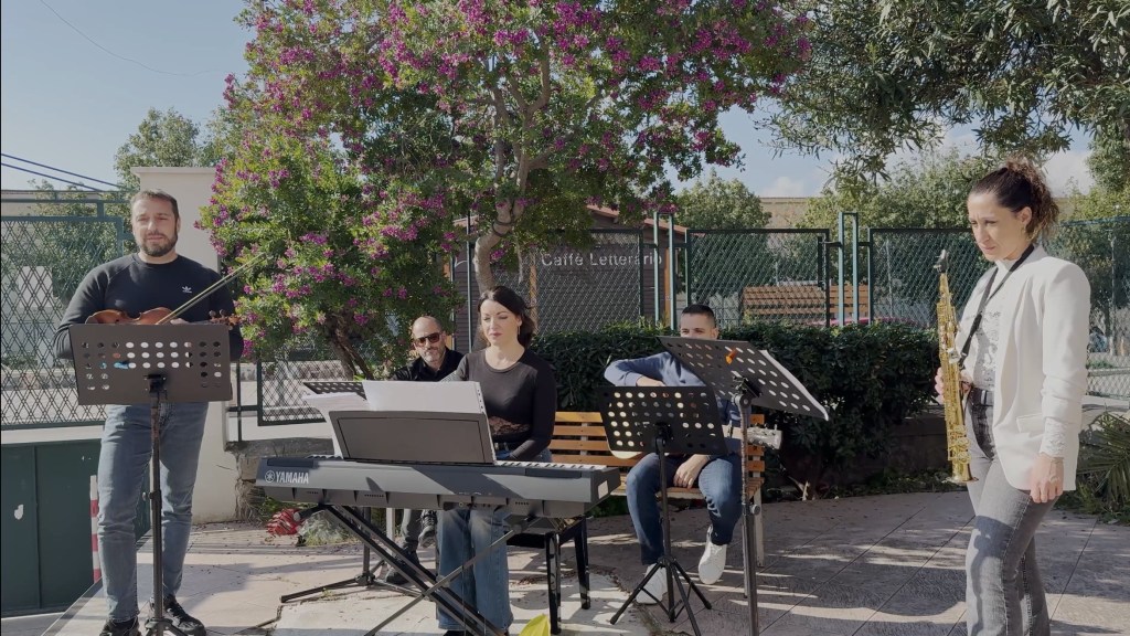 L’esecuzione ha visto protagonisti i docenti: Valentina Inzerillo al pianoforte, Rita Riina al sax soprano, Luigi Longini al violino, Angelo Marchese alla chitarra classica e Marco Polito alla chitarra acustica. Un ensemble che ha saputo restituire con sensibilità e misura tutta la delicatezza del brano, offrendo un’interpretazione elegante e coinvolgente.