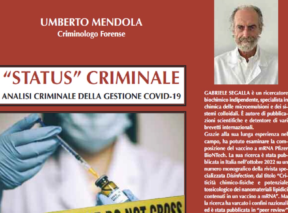 Molto interessante è stato quanto di nuovo prevale su questo nuovo libro rispetto al precedente libro “Stato Criminale” , infatti i nuovi capitoli che hanno amplificato ulteriormente il valore del contenuto, riguardano più aspetti scientifici e statistici che rafforzano e delineano ancor più il comportamento criminoso nella gestione del covid 19 da parte del decidente e fa comprendere i vari passaggi vissuti da tutta la popolazione in quel maledetto periodo. Semplice e unico sia nella parte descrittiva che nel contenuto scientifico, il libro rappresenta l’unica testimonianza che porta alla luce i seguenti aspetti: