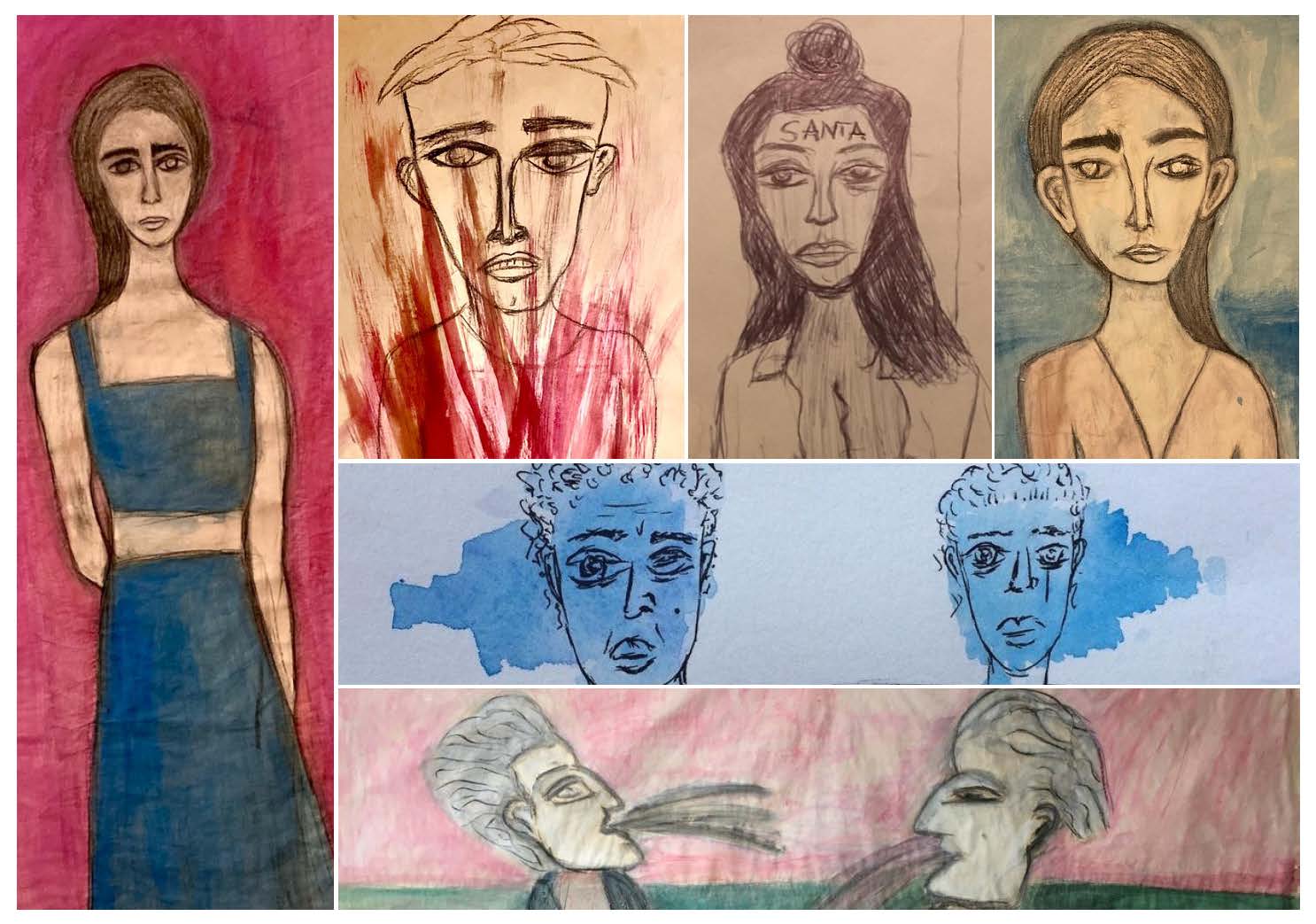 Notte, studio d’artista. Un uomo chino su un tavolo disegna freneticamente, uno via l’altro i fogli scivolano sul pavimento, dal mare di carta che si crea intorno al tavolo emergono delle figure, facce storte occhi grandi e segnati. Sono ombre, presenze mute che accendono la fantasia dell’artista. Dal silenzio di quei personaggi nascono le storie che l’artista racconta e vive sul suo corpo come un gioco che si ripete ogni notte quando il mondo non gli basta più.