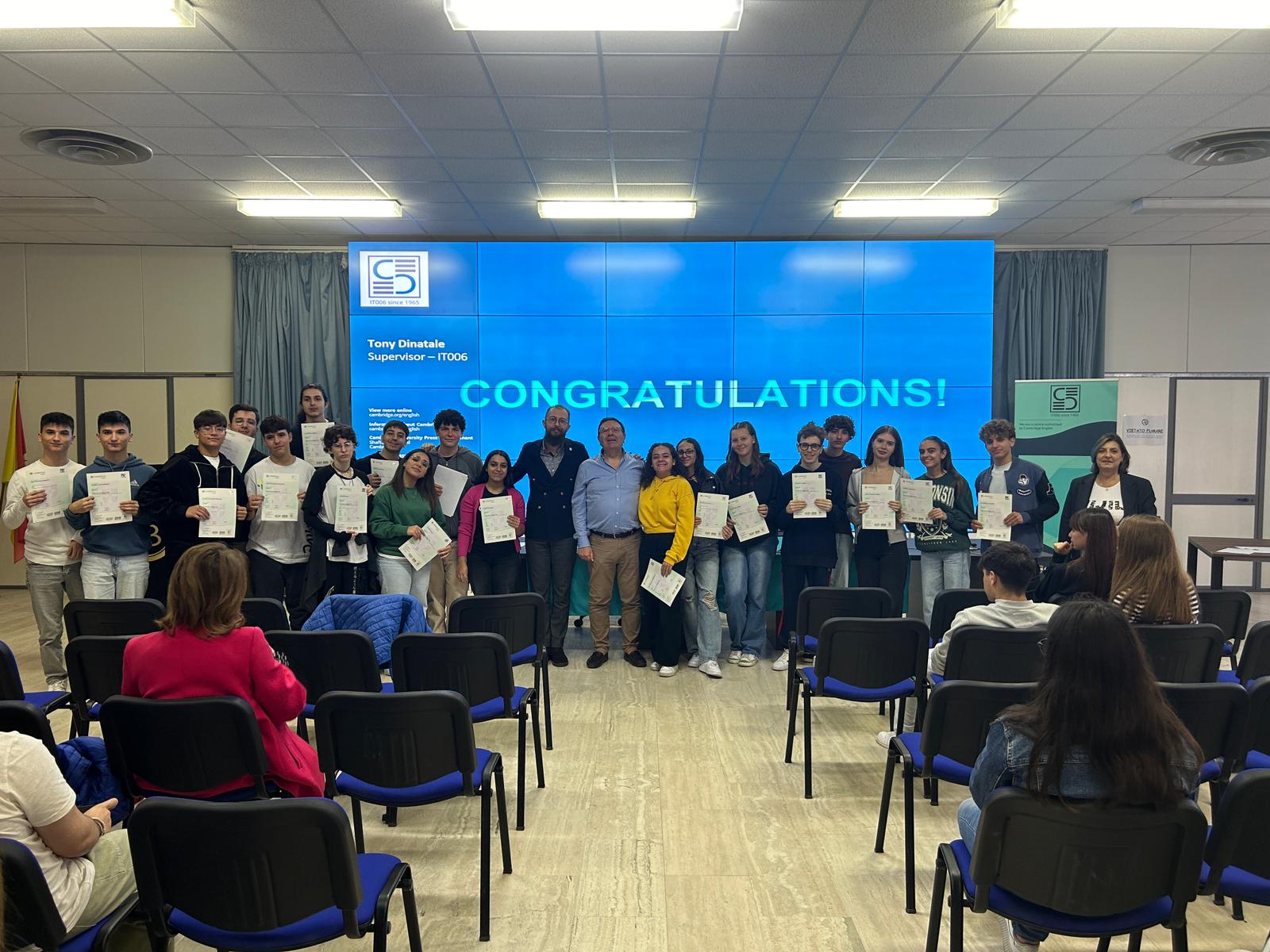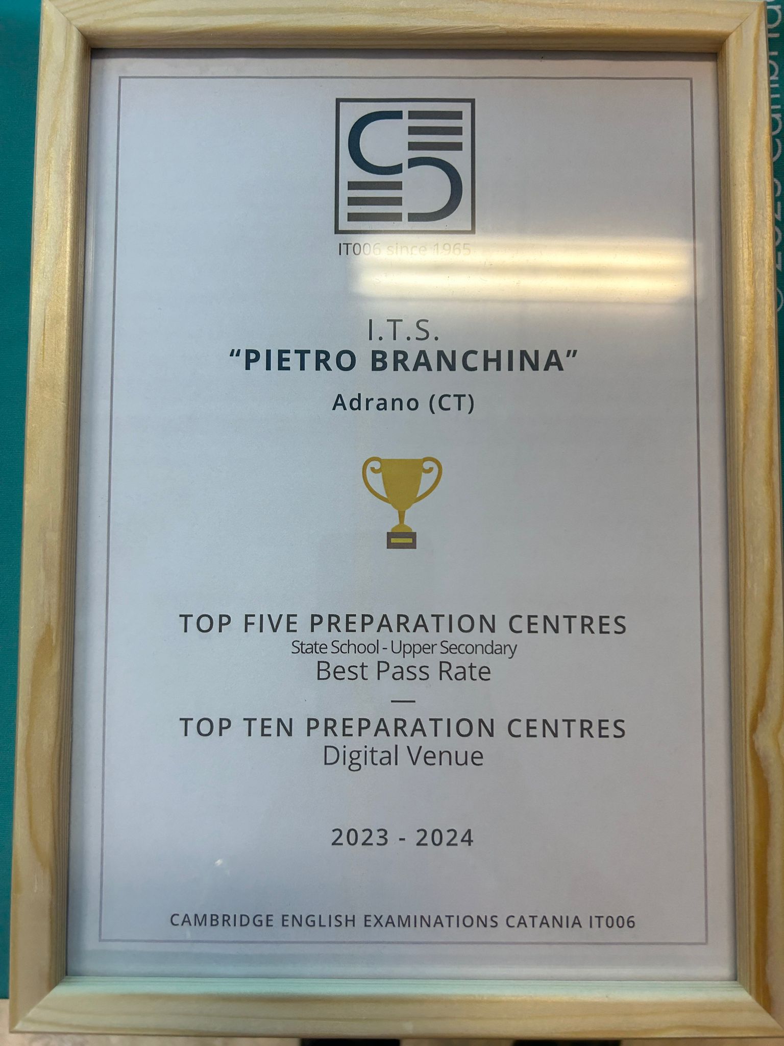 All’Istituto Branchina di Adrano, in provincia di Catania, si è svolta la cerimonia di consegna degli attesti per gli studenti che hanno conseguito la certificazione linguistica per il livelli A2,B1, B2 Cambridge. La Cerimonia è stata presieduta dal dirigente Vincenzo Spinella e dal supervisor Cambridge dott. Tony Di Natale A coordinare le classi sono stati i docenti Carmelo La Venia e Carlotta Lo Vetro.