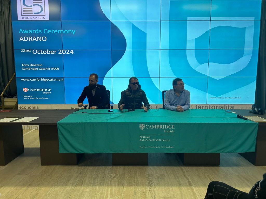 All’Istituto Branchina di Adrano, in provincia di Catania, si è svolta la cerimonia di consegna degli attesti per gli studenti che hanno conseguito la certificazione linguistica per il livelli A2,B1, B2 Cambridge. La Cerimonia è stata presieduta dal dirigente Vincenzo Spinella e dal supervisor Cambridge dott. Tony Di Natale A coordinare le classi sono stati i docenti Carmelo La Venia e Carlotta Lo Vetro.