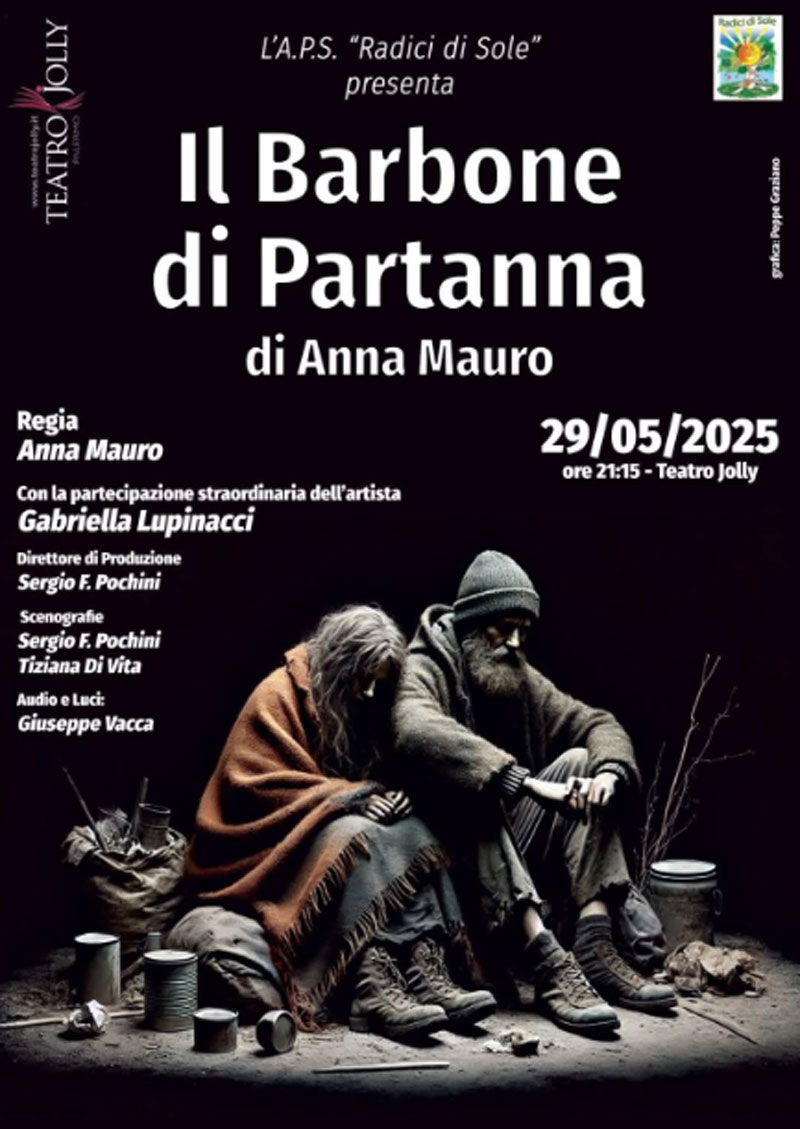 L’opera IL BARBONE DI PARTANNA tratta temi esistenziali e di emarginazione sociale. Un cast nutrito, una situazione di teatro nel teatro, una storia struggente per farci entrare in punta di piedi e dare un’occhiata a stralci di vita in bilico. Dall’anfiteatro di Partanna (TP) al Politeama di Palermo, dopo tanti anni di successo, si ripropone in questa stagione un’operazione che colpisce gli spettatori nell’intimo. La regia dell’opera è firmata dalla stessa autrice, promotrice del teatro come voce degli invisibili.