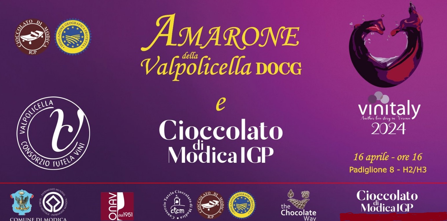 Il Cioccolato di Modica Igp tra i protagonisti dell’edizione 2024 del Salone Internazionale dei Vini e dei Distillati Vinitaly, che si tiene a Verona Fiere dal 14 al 17 aprile appuntamento nel quale il primo e unico cioccolato europeo a marchio IGP si presenta al selezionato pubblico del Vinitaly per farsi conoscere ed apprezzare in tutte le sue molteplici caratteristiche grazie a quattro straordinari eventi
