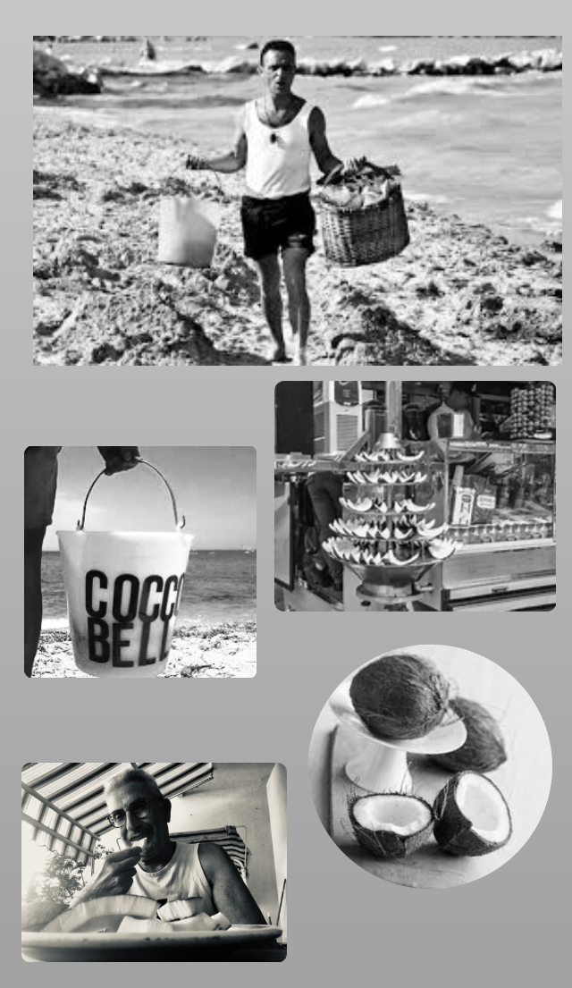 Immediatamente gli risposi che da noi Il venditore di cocchi è un’icona dell’estate e delle feste: passava fiero con i suoi cocchi freschi e ci divertiva con slogan accattivanti creati apposta per attirare l’attenzione sul cocco bello a fettine da mangiare sotto l’ombrellone, per curiosità e anche per divertimento. Iniziai una carrellata di filastrocche che avevo ascoltato ed imparato nei miei soggiorni pur brevi nella riviera Iblea.