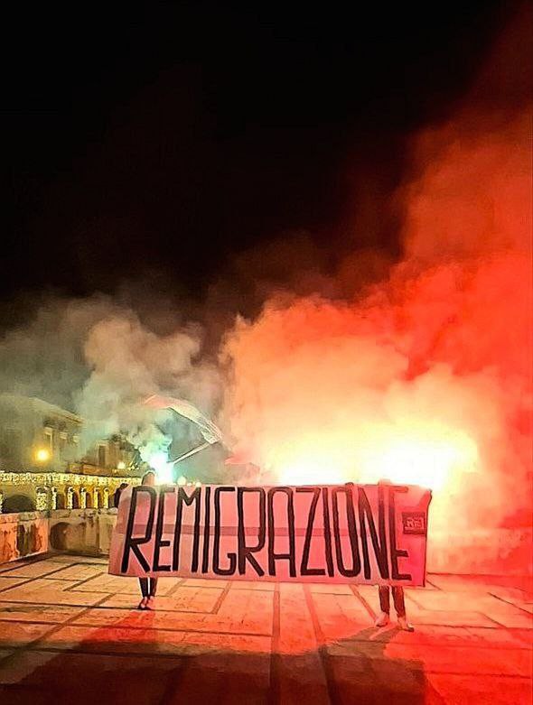 Noto, 6 gennaio 2026 – Remigrazione e Riconquista esordisce anche in Sicilia, primo approdo in Europa della criminale immigrazione clandestina di origine africana. A Noto, capitale del Barocco, lo sventolio dei tricolori, ha fatto da cornice allo striscione Remigrazione in pieno centro storico, illuminato dal verde, bianco e rosso della bandiera patria. L’indiscriminato utilizzo del caporalato affonda le radici proprio nelle campagne, e non solo, siciliane; la manovalanza della delinquenza, le nuove mafie straniere e tutte le storture legate agli sbarchi, la Sicilia da decenni soffre il fenomeno e anche per la Trinacria è giunto il momento di dire basta! L’azione precede la raccolta firme per la proposta di legge popolare che partirà a febbraio.