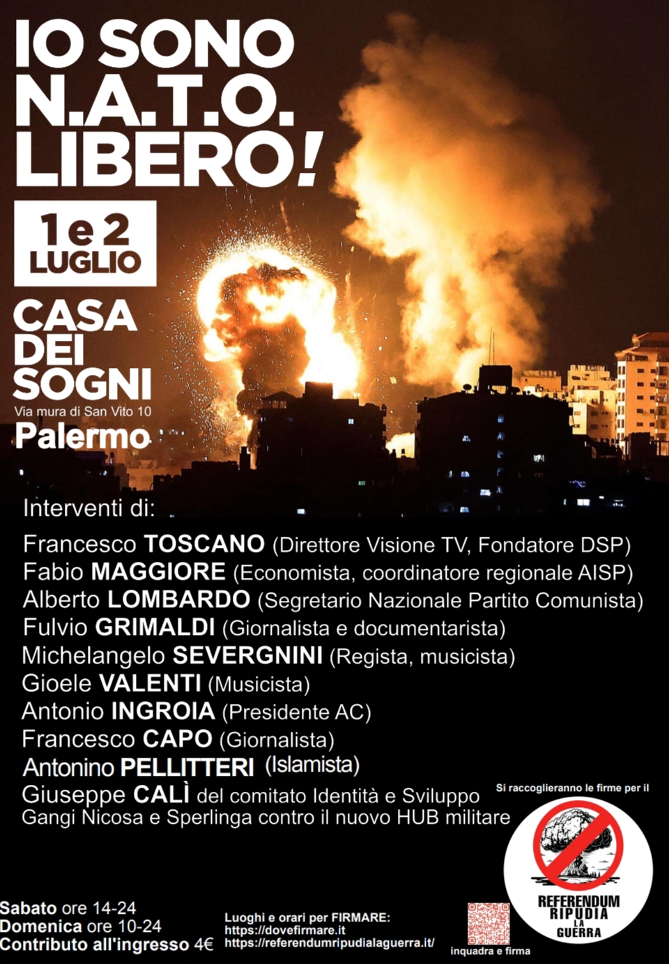 Il comitato “Ripudia la guerra” organizza un grande evento di due giorni a Palermo: “IO SONO N.A.T.O. LIBERO”