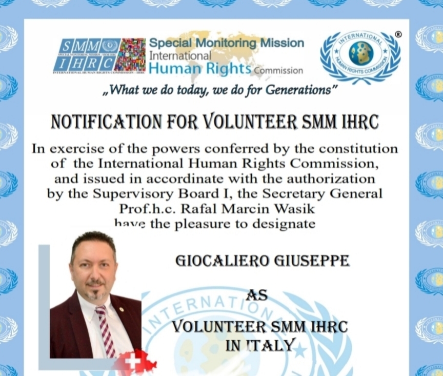 Il Giurista, Criminologo e Sociologo forense palermitano Dott . Giuseppe Giocaliero ha fatto il suo ingresso all’interno della Ihrc, ovvero la Commissione internazionale per i diritti umani. Si tratta di un’organizzazione internazionale dedicata all’attuazione della Dichiarazione universale dei diritti umani a livello regionale, nazionale e internazionale. I suoi membri in tutto il mondo stanno attivamente promuovendo la conoscenza e la protezione dei diritti umani da parte e per tutta l’umanità.