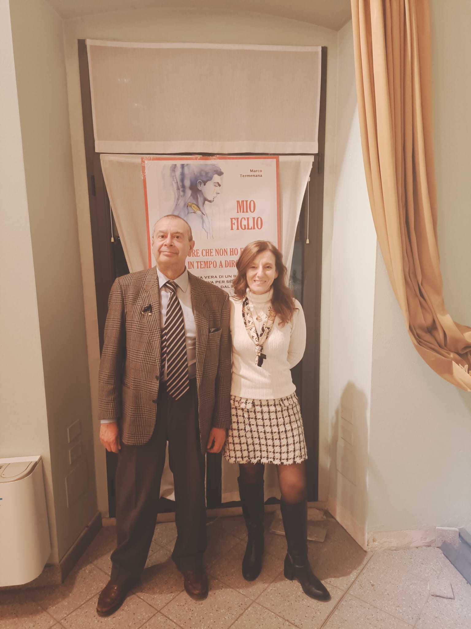 NELLE FOTO L’ASSESSORE AI SERVIZI SOCIALI DEL COMUNE DI BEZZIOLE GRAZIELLA VEDOVELLO CON L’AUTORE MARCO TERMENANA