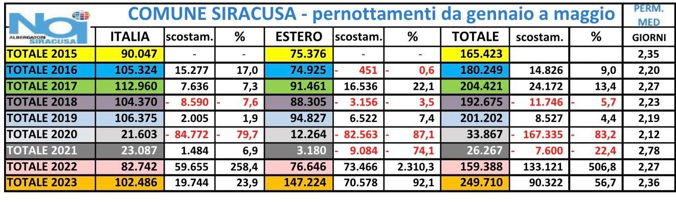 le scrivo come cittadino e nel ruolo che ricopro, per informarla sui dati dei flussi turistici totalizzati a Siracusa al 31 maggio e comparati con gli stessi periodi: dal 2015 al 2023, da cui osserverà la ragguardevole crescita, in controtendenza sulla recente indagine del Centro studi Srm che vede la Sicilia “indietro nel turismo e poco competitiva in Europa”, facendola rotolare “al 35° posto, dopo Sardegna (21ª), Campania (23ª) e Puglia (25 ª)”. Sicché, le farà piacere rilevare che la nostra città, all’opposto, veleggia con il vento in poppa, nel momento in cui – a fine maggio – ha registrato 249.710 pernottamenti +56,7% sullo scorso anno, di cui 147.224 straniere. Un dato sbalzato allo strabiliante +92,1% sul 2022! Ciò dovrebbe riempirla di grande soddisfazione e orgoglio perché per la prima volta, nella storia turistica cittadina, i soggiorni degli stranieri superano ampiamente quelli degli italiani: 102.486. I dati esaminati fanno fra l’altro supporre che il 2023 supererà i valori del 2019: un anno record per il turismo siracusano. E allora, tutto va bene? Certo che no!